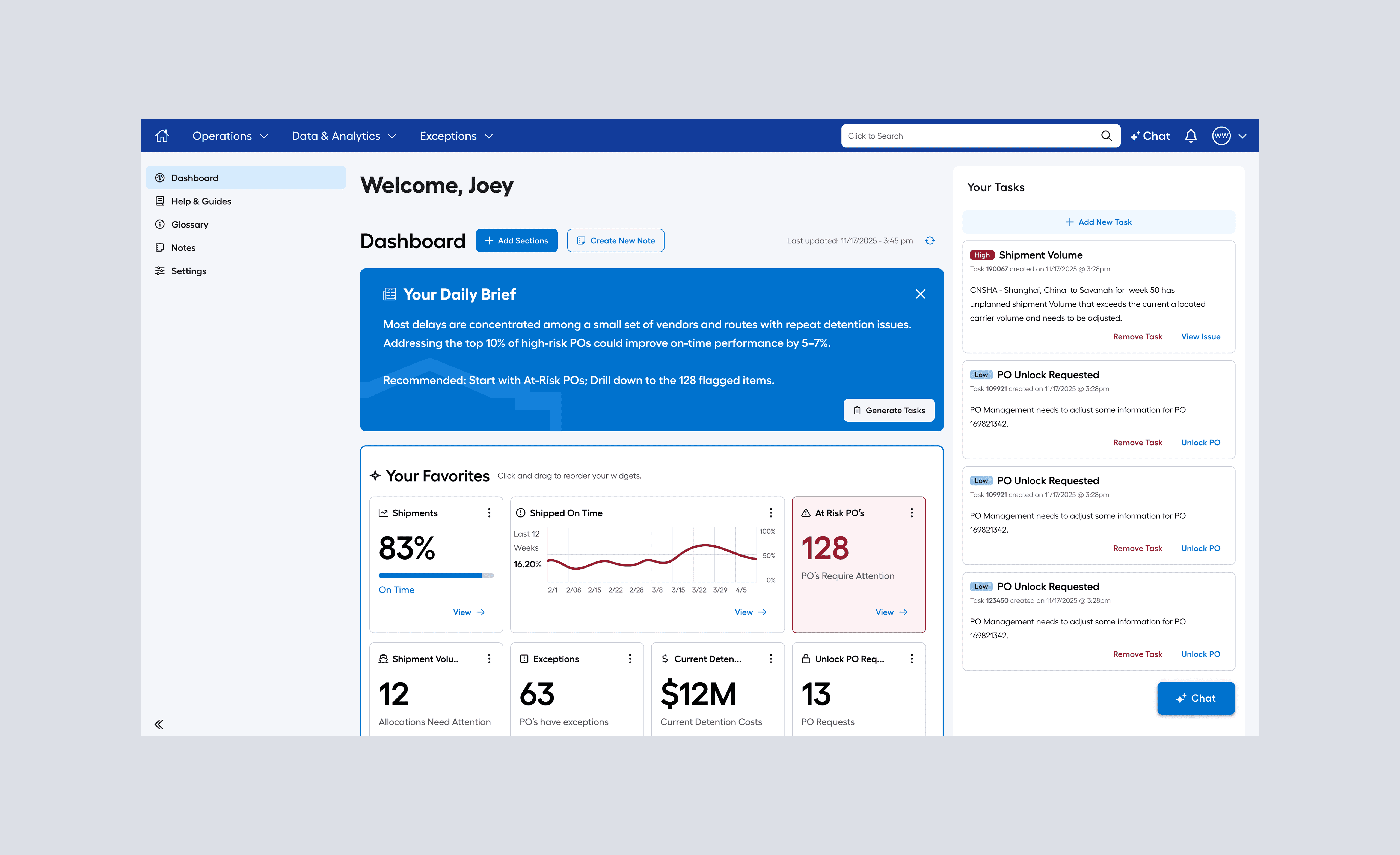 Rather than designing another dashboard, we set out to define a new operating standard - one where data, automation, and design work together to reduce cognitive load and make complex decisions feel obvious.